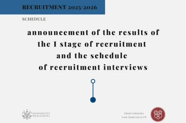 Dear Candidates, below we are presenting the results of the I stage of recruitment to the Doctoral School of Social Sciences at University of Warsaw for the academic year 2025/2026 ...